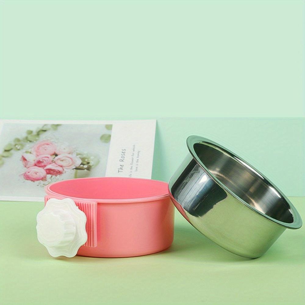 2 Pieces Removable Stainless Steel Crate Dog Bowl for Pet Kennel Hanging Food Water Feeder Bowl Cage Coop Cup in Blue & Pink for Puppy Medium Dog Cat Rabbit Ferret Bird