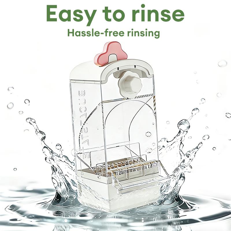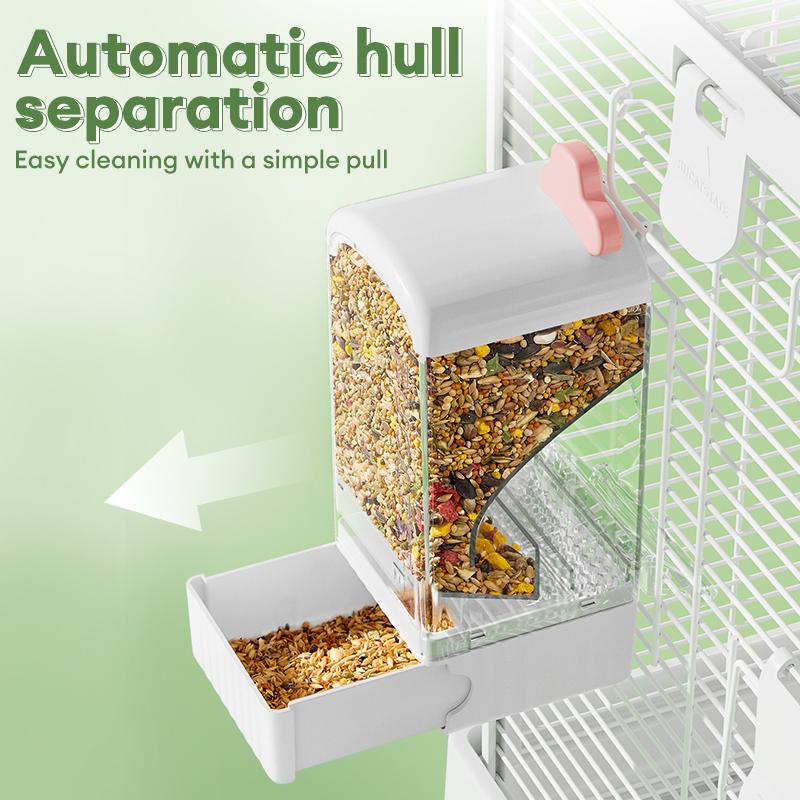 Built-in dedicated husk separation structure filters chaff into a removable collection tray automatically as parrots peck, leaving only clean grains. It prevents your parrot from eating spoiled husk at the source and boosts dietary health. The detachable tray is easy to clean—just empty and rinse.