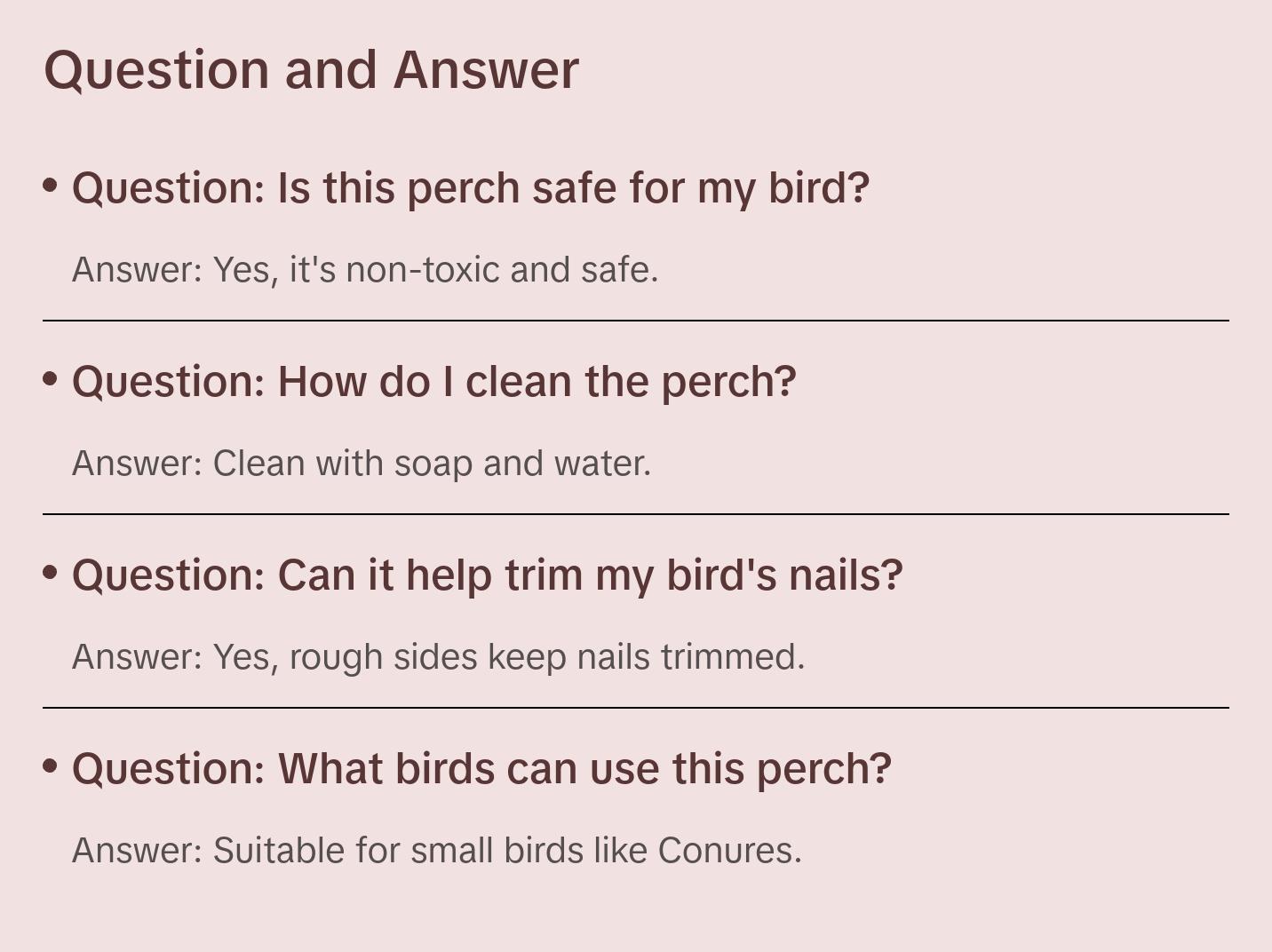 - Non-toxic and safe for your bird