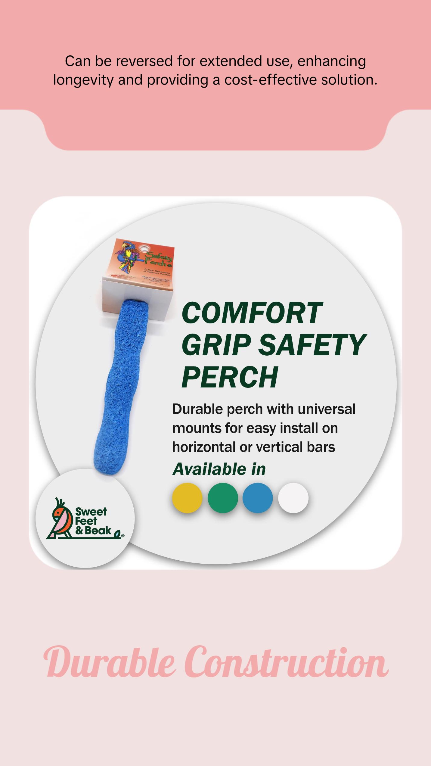 Comfort Grip Safety Perch for Bird Cages - Pedicure Perch for Healthy Nails & Beaks - Easy to Install Bird Cage Accessories - Small, 6.5"