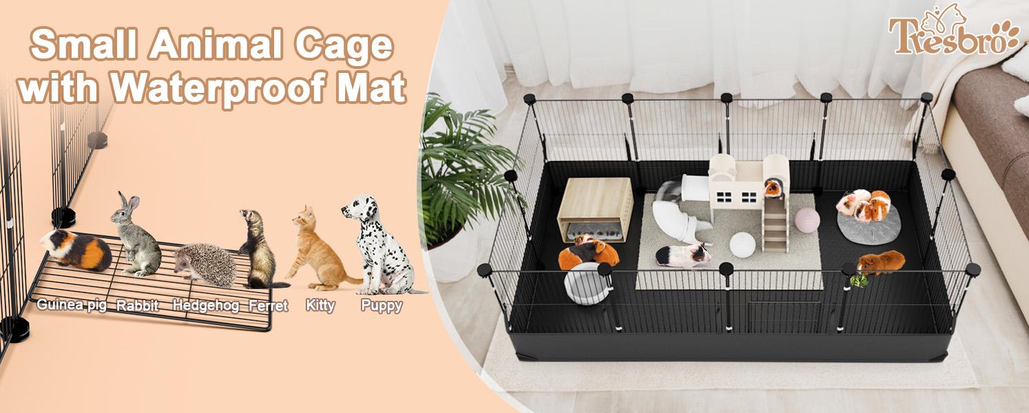 - DIY for Your Small Pets: The 8 square feet is an spacious room for the majority of small animals. As owners, you can use your imagination to fully arrange the different uses of each place in the cage. This full-body patented product can also be used as bunny pen, rabbit play pen, hedgehog cages, ferret play pen. If you have larger mats or your don't need a mat, the fence shape can be changed more.