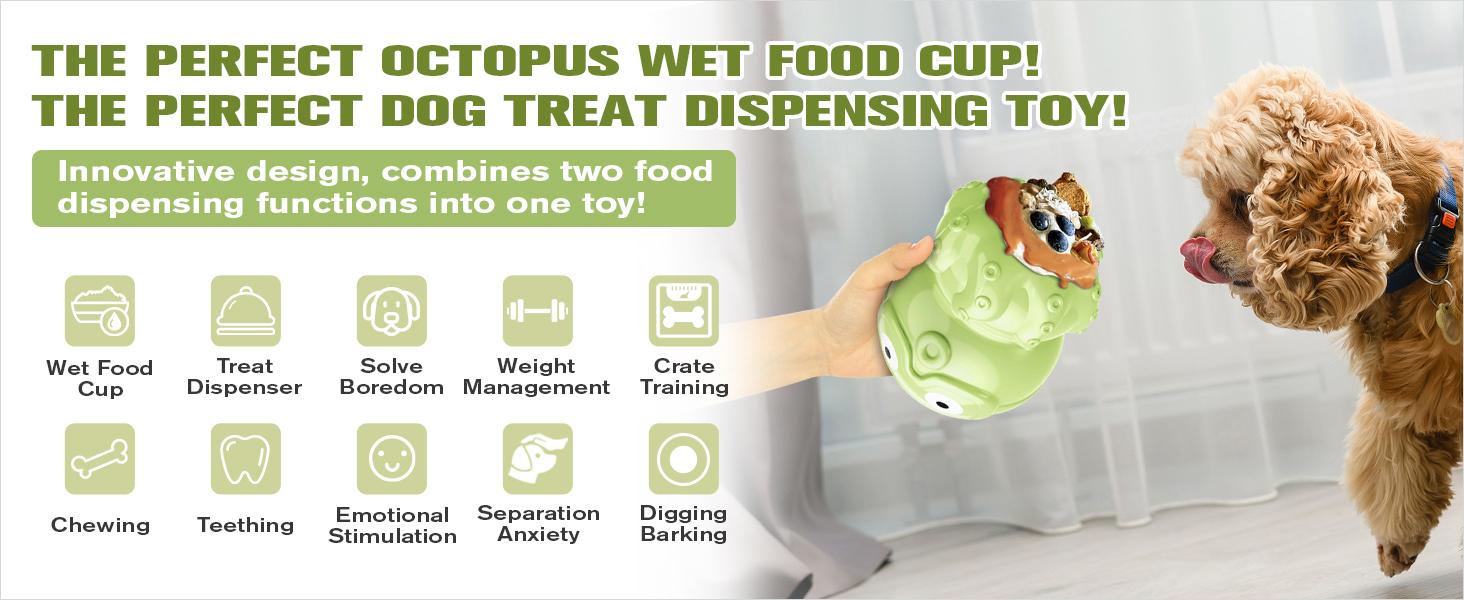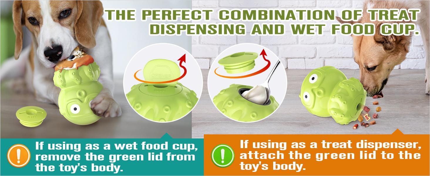 [Dog Stuffable Toy from the United States, American Brand with U.S. Patent][Multifunctional Dog Treat Toy] This innovative dog toy combines dry food dispensing, treat dispensing, wet food slow feeder cup and other features. It serves as a chew toy, indoor interactive toy and crate training toy, offering various experiences and playful.