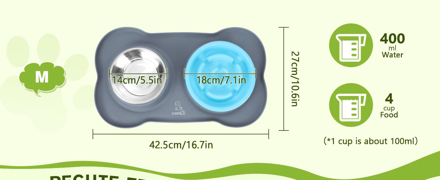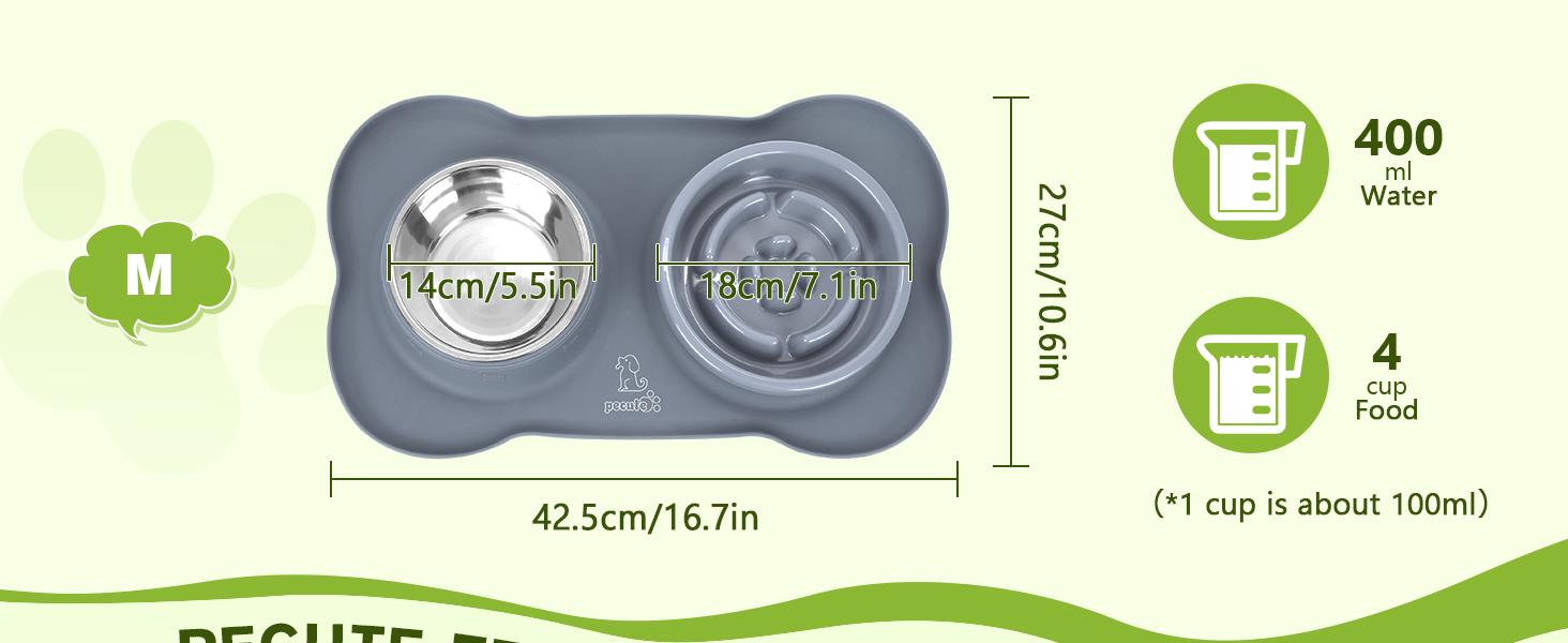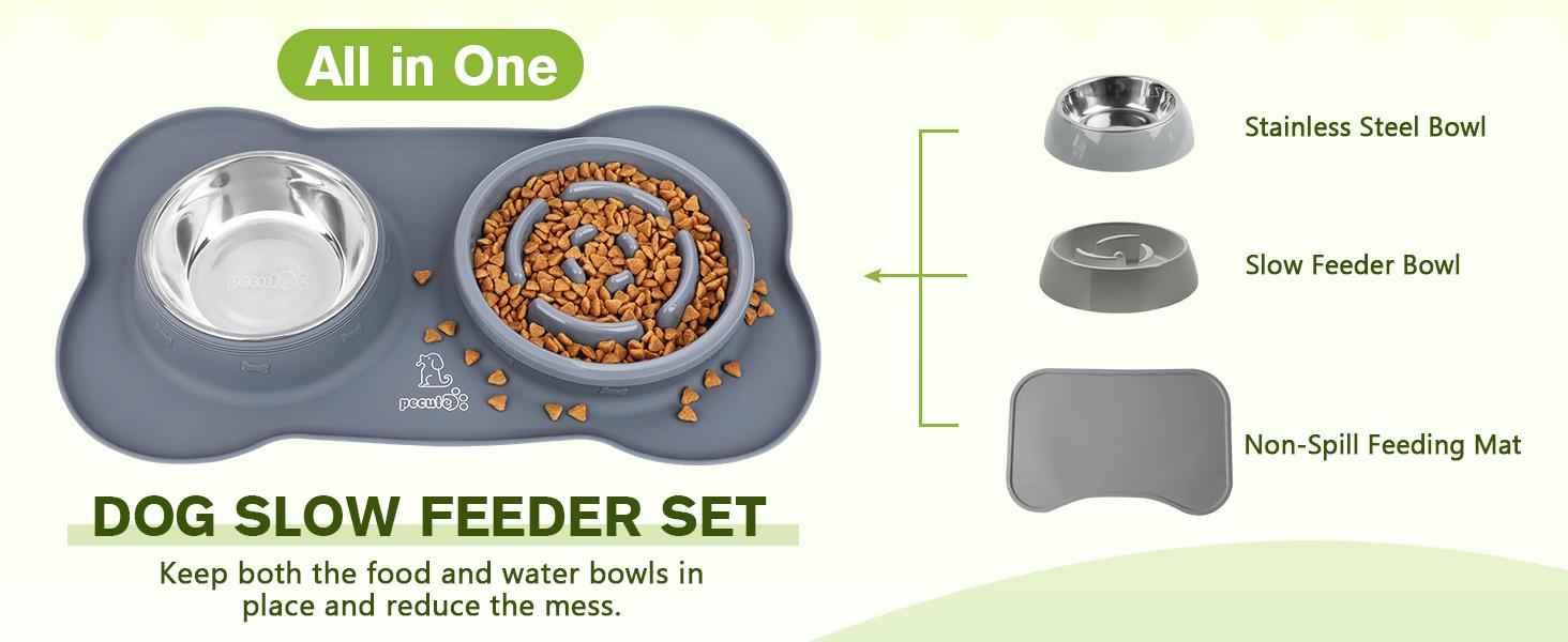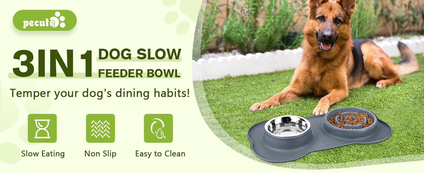 Pecute Slow Feeder Dog Bowls to Slow down Eating, Dog Bowl Slow Feeder with No-Spill Non-Skid Silicone Mat, Food-Grade Safe Dog Food Bowls Slow Feeder, Stainless Steel Dog Water Bowl for Dogs Cats