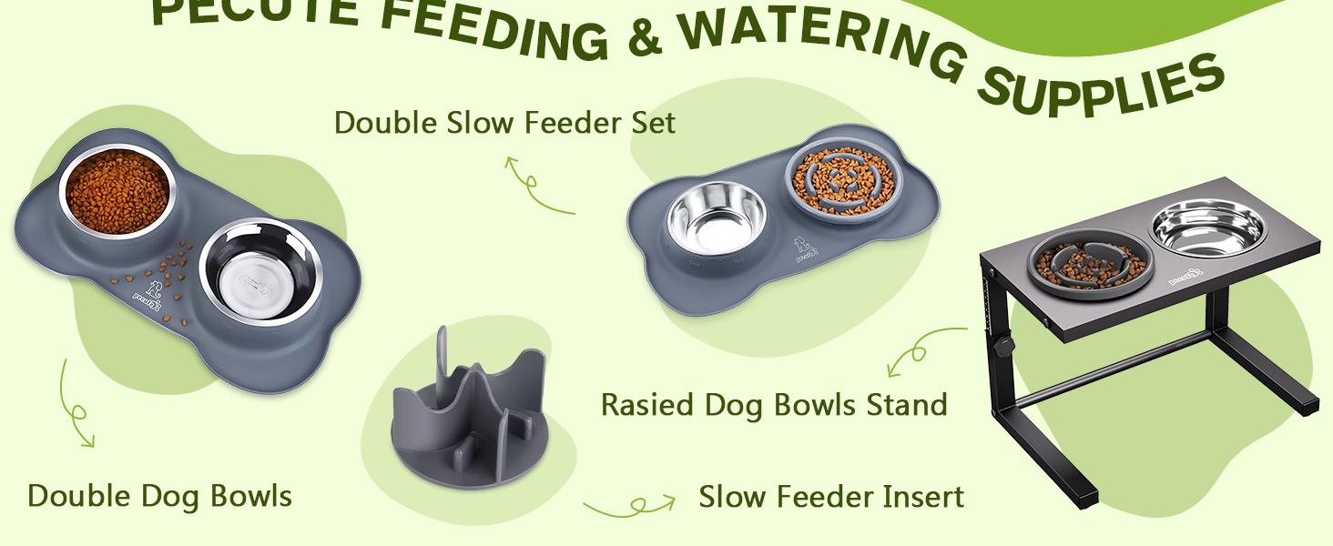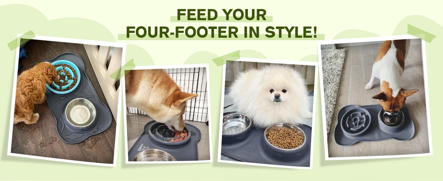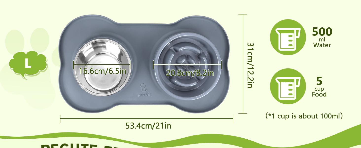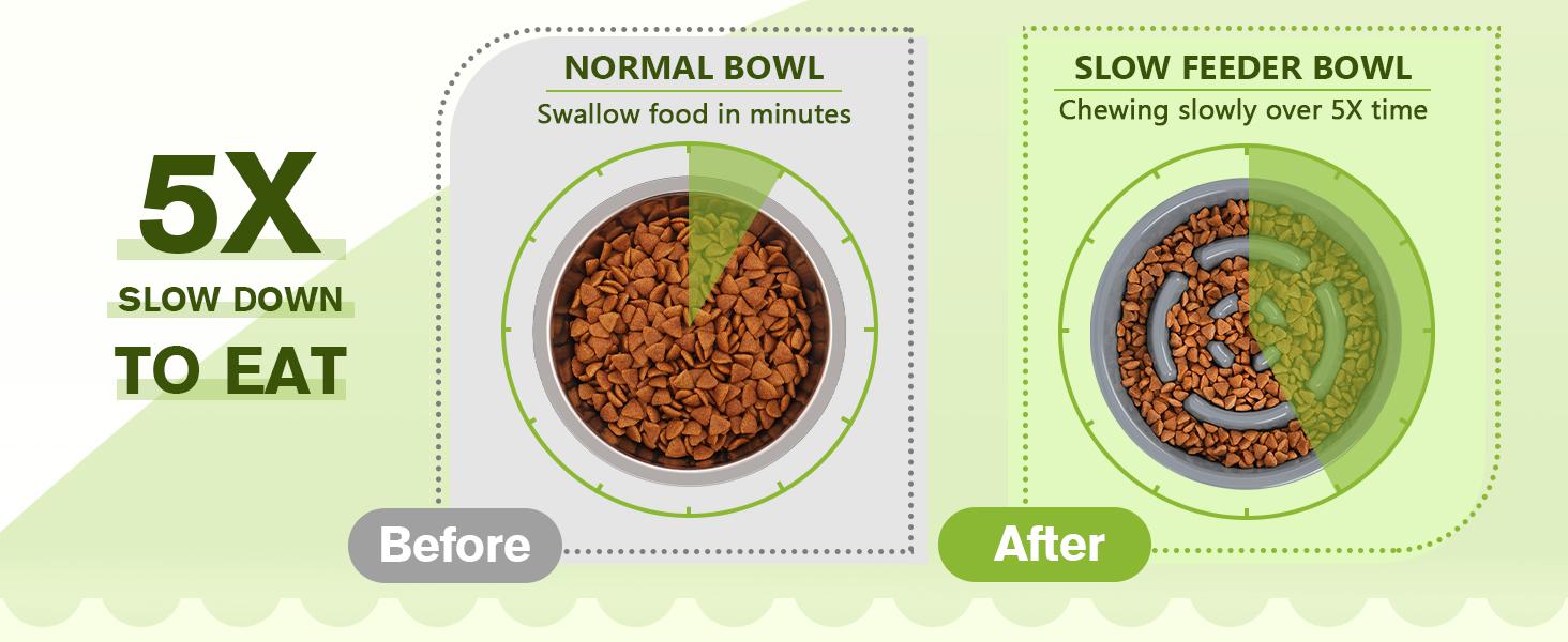Pecute Slow Feeder Dog Bowls to Slow down Eating, Dog Bowl Slow Feeder with No-Spill Non-Skid Silicone Mat, Food-Grade Safe Dog Food Bowls Slow Feeder, Stainless Steel Dog Water Bowl for Dogs Cats