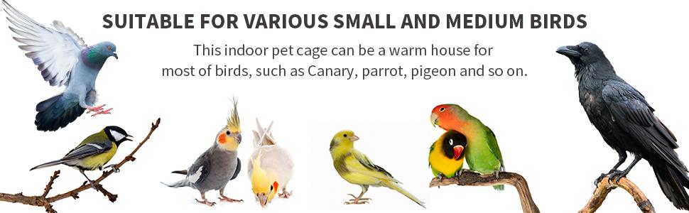 Ideal for Small/Medium Birds:With dimensions of 24''×17''×53''(L×W×H), the large bird cage can easily accommodate 2-3 birds like budgerigars, parakeets, parrots, cockatiels, lovebirds, etc.