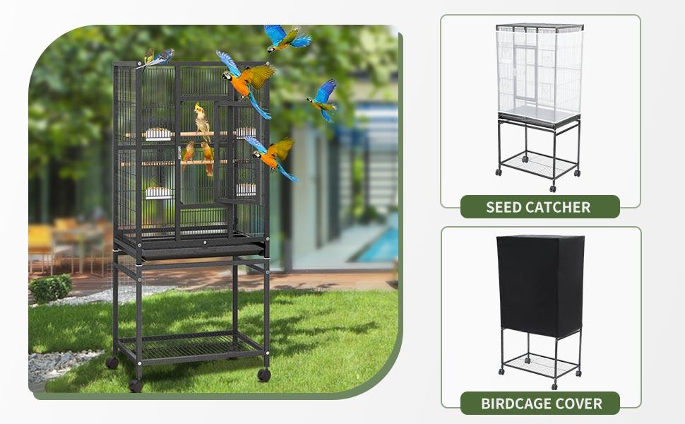 Yitahome 53/52 Inches Birdcage Cover and Bird Cage Seed Catcher, Bird Cages for Parakeets, Parrot, Cockatiel, Pigeon, Flight Cage for Birds